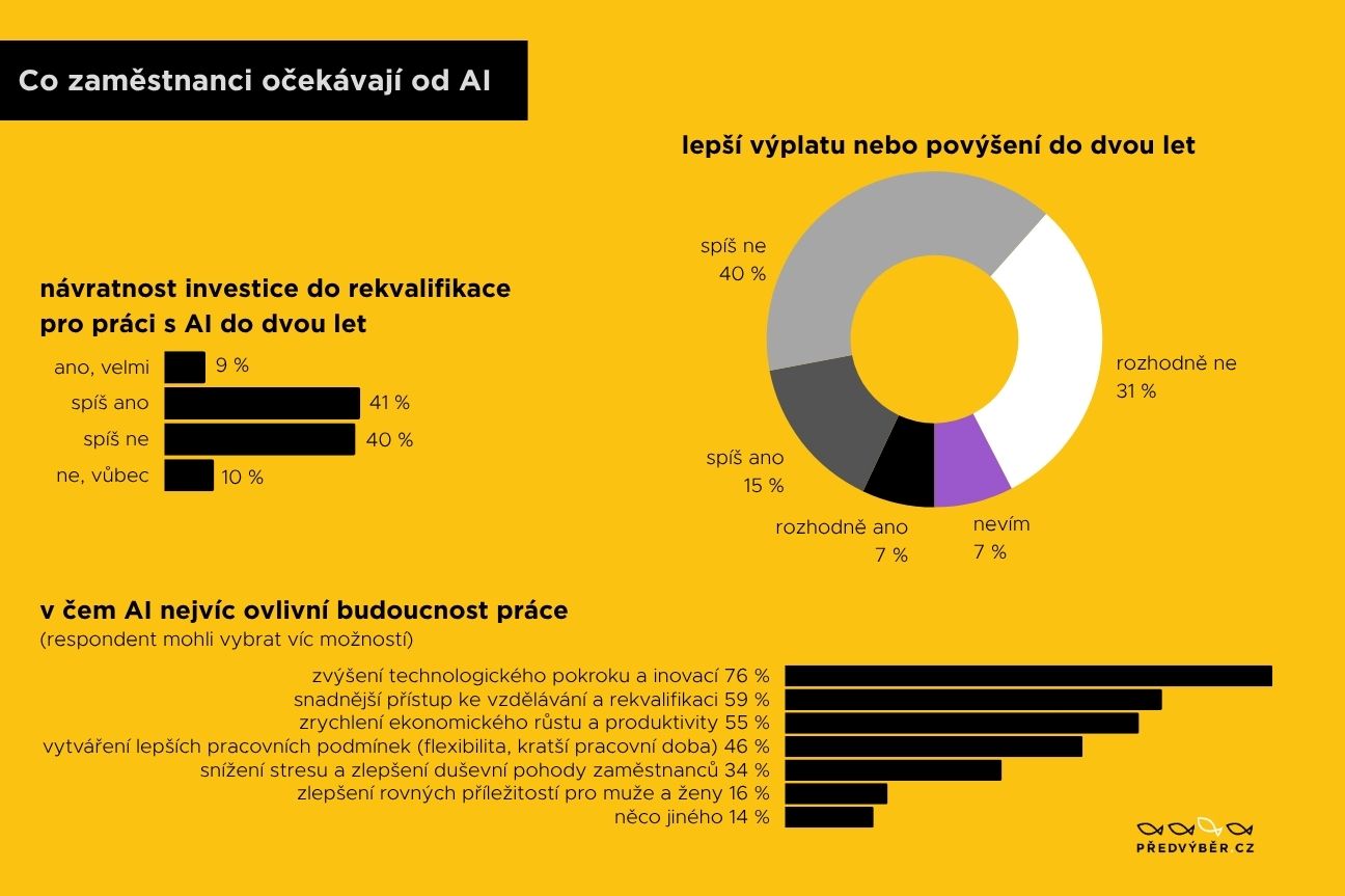 Přes 70 % dotázaných neočekává, že jim umělá inteligence v následujících dvou letech pomůže k lepšímu platovému ohodnocení nebo povýšení. Dvěma třetinám zaměstnanců by vadilo, kdyby jejich pracovní výkony posuzovala umělá inteligence.