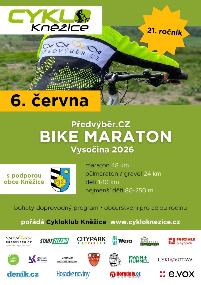 Už po jedenadvacáté vyrazí letos v sobotu 6. června od kněžického zámku závodníci cyklistického závodu Předvýběr.CZ Bike Maraton Vysočina 2026.